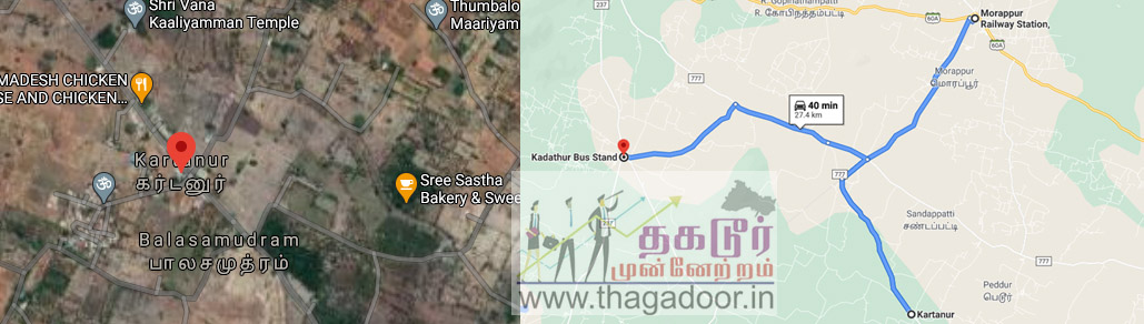 இது மாவட்ட தலைமையகமான தர்மபுரியிலிருந்து கிழக்கு நோக்கி 25 கி.மீ தொலைவிலும், மாநில தலைநகர் சென்னையிலிருந்து 269 கி.மீ தொலைவிலும் அமைந்துள்ளது.