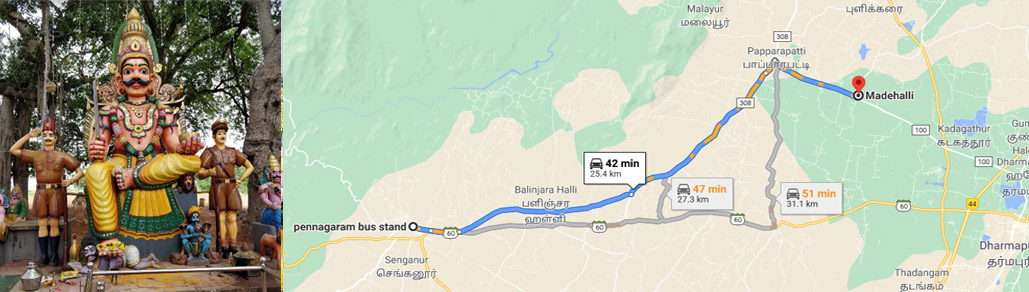 இது மாநில தலைநகரான சென்னையில் இருந்து 297 கி.மீ தொலைவிலும், துணை மாவட்ட தலைமையகம் பென்னகரத்திலிருந்து 23 கி.மீ தொலைவிலும், மாவட்ட தலைமையக தர்மபுரியிலிருந்து 18 கி.மீ தூரத்திலும் அமைந்துள்ளது.
