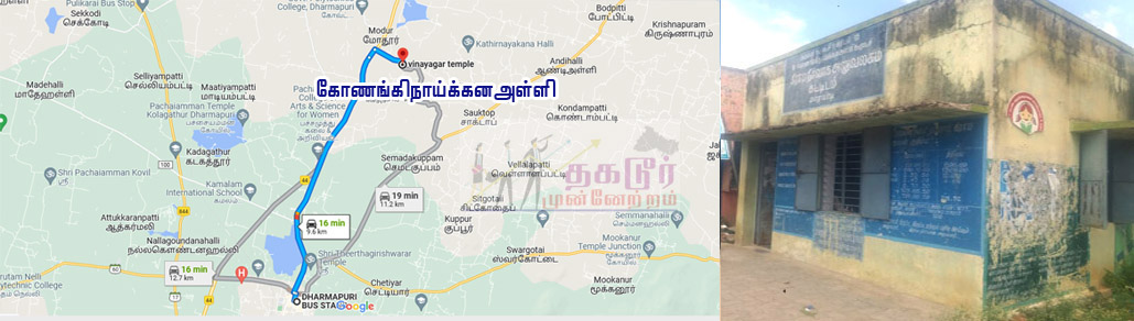 இது தர்மபுரியிலிருந்து 6 கி.மீ தூரத்தில் அமைந்துள்ளது. இது கோணங்கிநாயக்கனஅள்ளி கிராமத்தின் மாவட்ட மற்றும் துணை மாவட்ட தலைமையகமாகும்.
